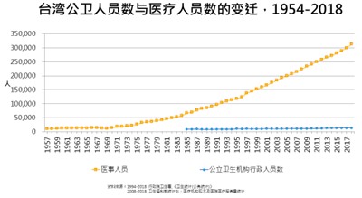 接着慢慢的,这样的政策就开始逆转,到70年代末、80年代就很明显了:随着这个经济及公卫政策的逆转,公卫体系开始医疗化——所谓“公卫体系医疗化”,就是在公卫体系的预防及医疗两大部门中,医疗部门无论在经费及人力都占绝大的比例,而预防部门则相对占十分低的比例。这个时期,政府和私人资本开始大力投入到医疗部门,政府也开始鼓励私人资本投入到医疗领域。再加上私人资本会不断扩张、不断积累的规律,医疗部门就不断的扩大,相对的,政府对预防部门的投入是微弱的、也并没有因应台湾民众的疾病形态从传染病为主转移到慢性病为主的变化而有所增长。