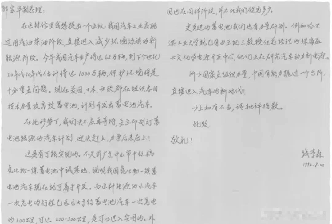 由此,钱学森提出了很多极具预见性的重大科研方向,例如前一段时间被网友翻出来的钱学森在1992年写给邹家华的信,他在三十多年前已经提出让中国预先研究新能源汽车,实现弯道超车。