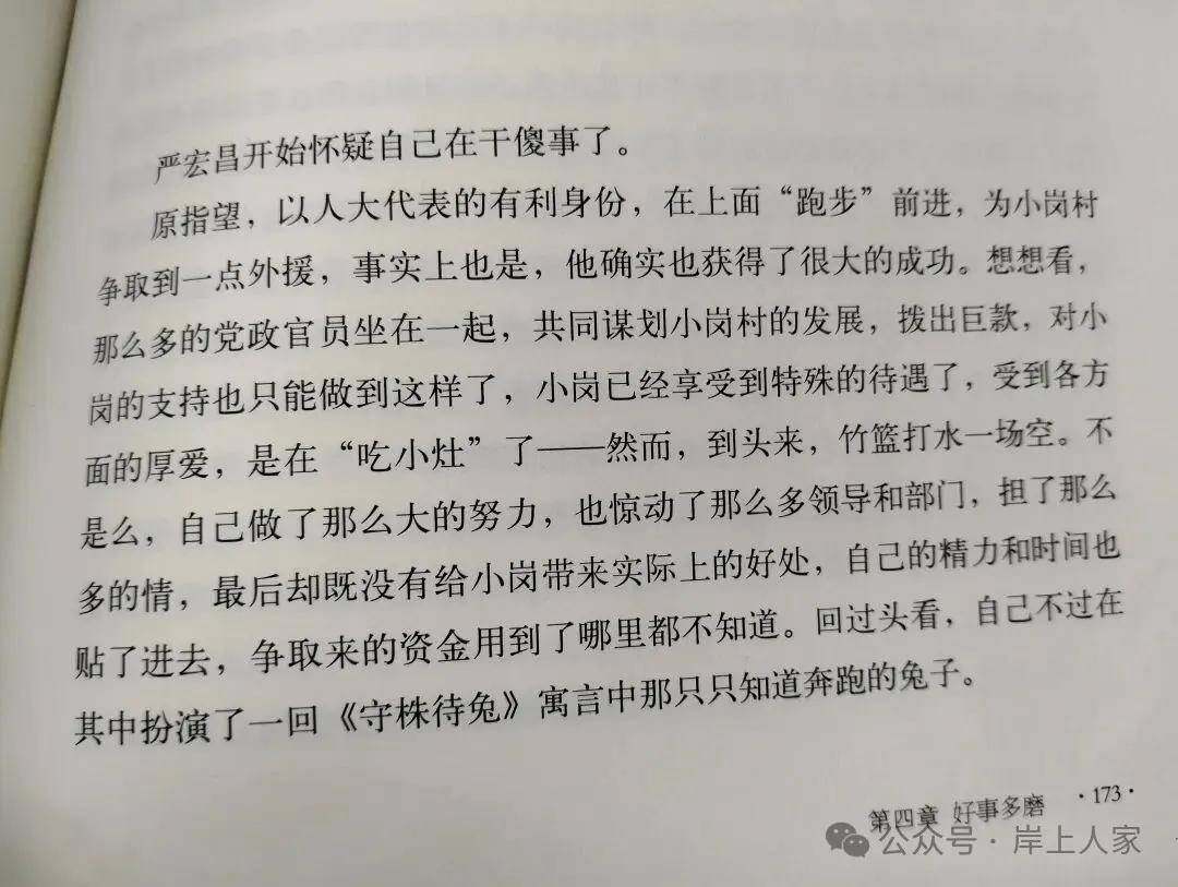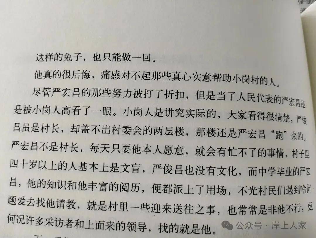 作为村长的堂哥严俊昌,没有文化,连村委会的二层楼都是严宏昌跑出来的。大海航行靠舵手,从严宏昌的描述可以知道,小岗村呼唤那个真正有能力的人来掌舵。