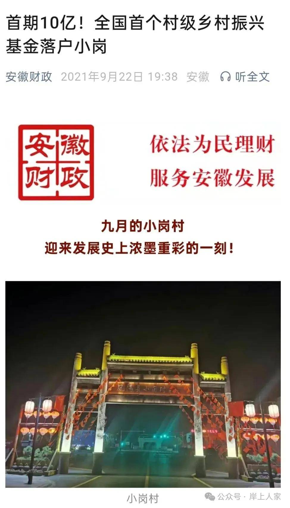 2021年,全国首个村级乡村振兴基金落户安徽小岗村,第一期就有10亿元人民币(首期10亿!全国首个村级乡村振兴基金落户小岗)。想来,这笔10亿元的乡村振兴基金,一定也有古稀之年的严宏昌所贡献的智慧。