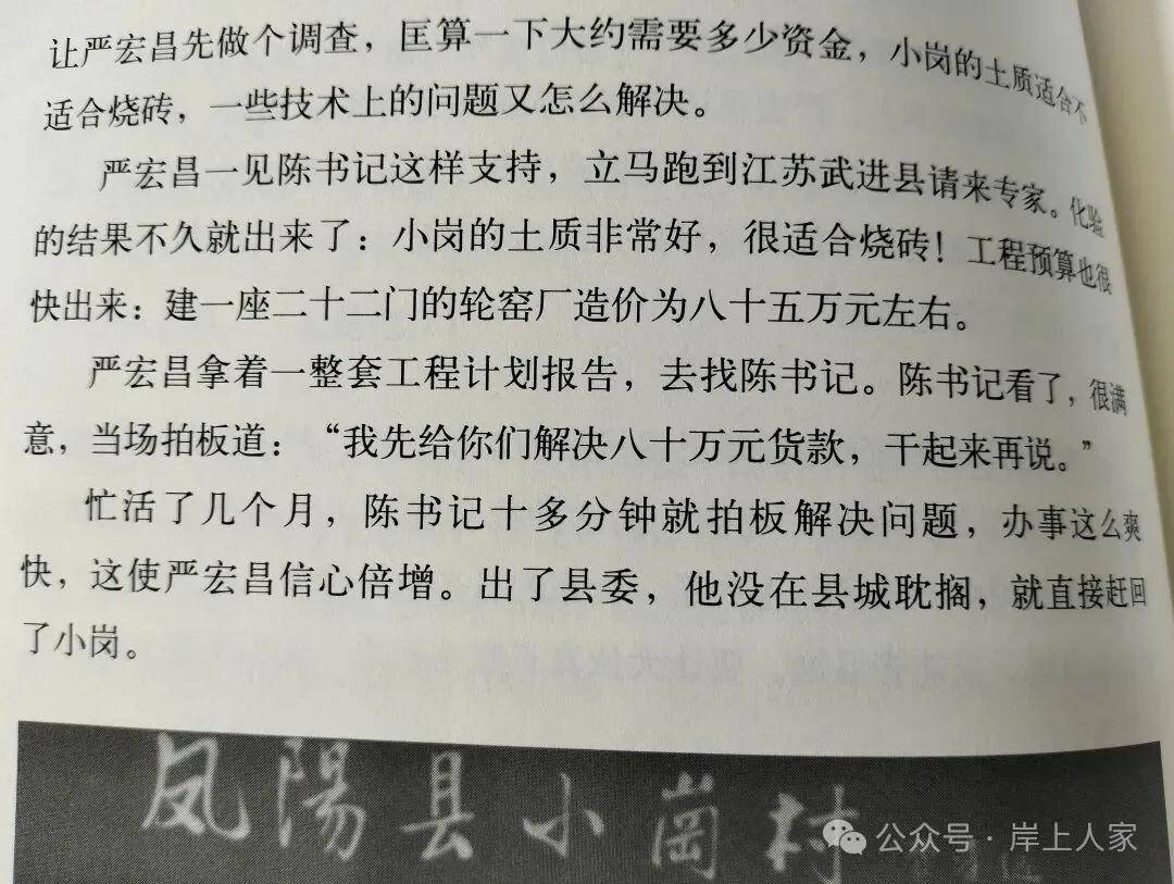 80年代,严宏昌想着在村里办一家砖窑厂,于是写了一份预算85万元的工程计划书,找到了县委书记陈庭元。