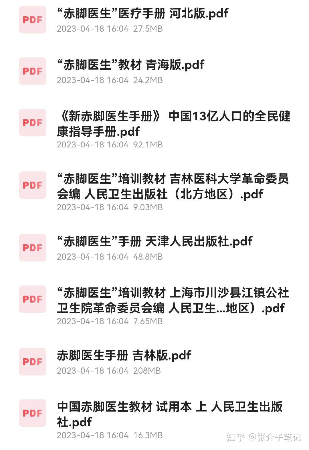 以下是我个人收集各地区的《赤脚医生手册》目录,总共22册PDF版