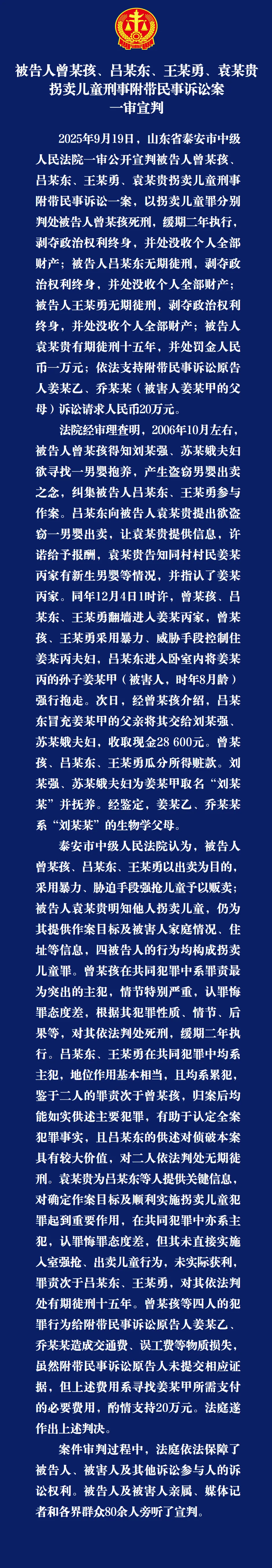 入室抢婴贩卖案宣判:1人死缓、2人无期、邻居被判15年